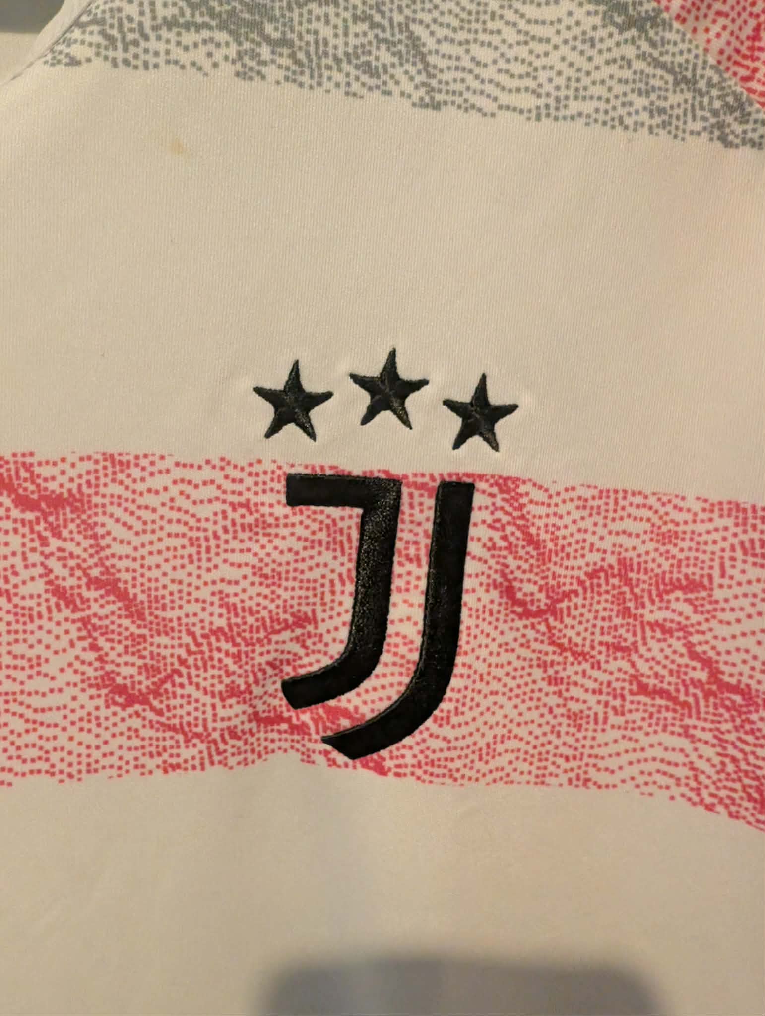 Conquer the Pitch in the Juventus 23/24 “Monte Rosa” Kit Pay homage to the towering peaks overlooking Turin. The Juventus 2023/24 Away Jersey is a reimagining of the club’s iconic stripes, transformed into horizontal grey and pink hoops that mirror the craggy, snow-capped face of the Monte Rosa massif.